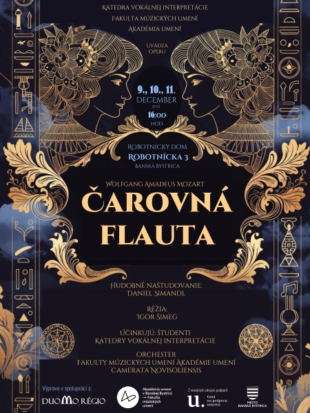 Katedra vokálnej interpretácie a Fakulta múzických umení Vás srdečne pozývajú na operu Čarovná flauta - 9., 10. a 11. Decembra v Robotníckom dome o 16:00 hod